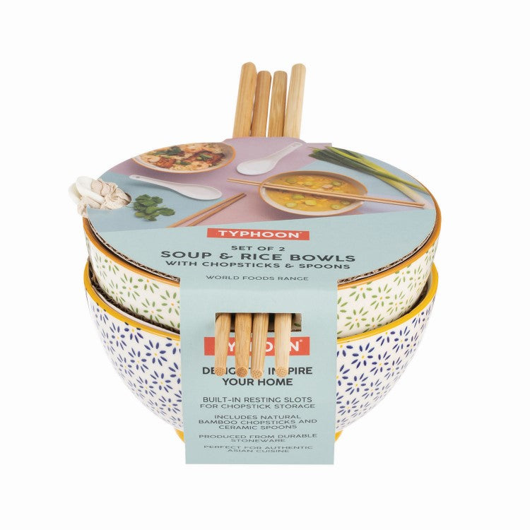 Bol fleuri pour ramens avec baguettes en bois - Danesco